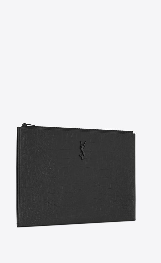 Saint Laurent Dokumentenmappe Aus Schwarzem Leder Mit Krokodillederpragung Mit Reissverschluss Saint Laurent Osterreich Ysl Com