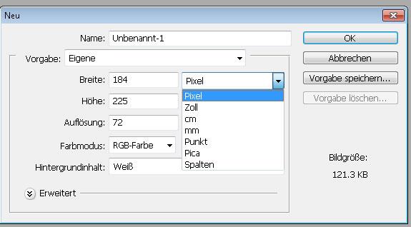 Adobe Photoshop Masseinheiten