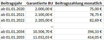 Konfiguration Berufsunfahigkeitsversicherung