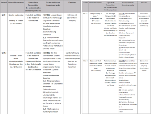 Schulinternes Curriculum Im Fach Englisch Pdf Kostenfreier Download