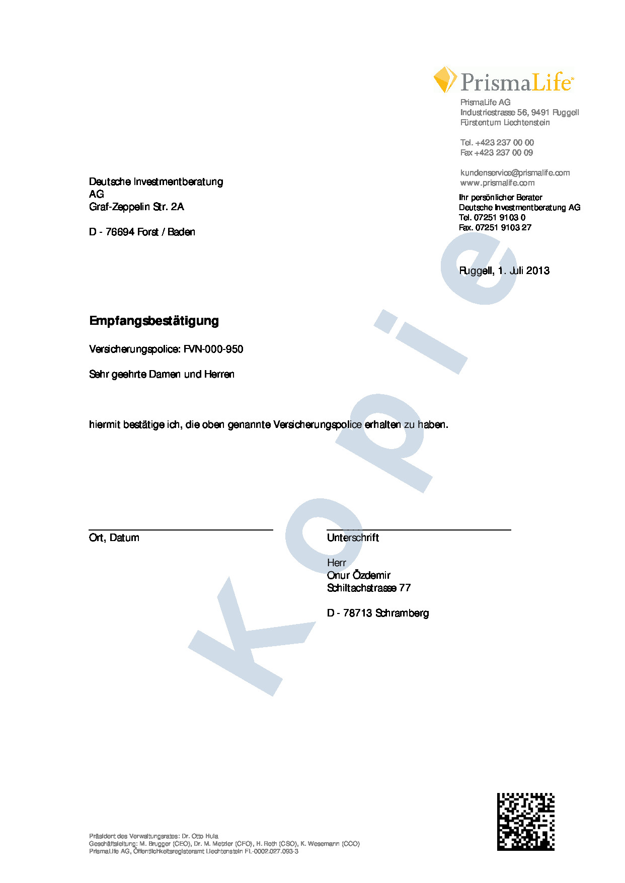 Empfangsbestatigung Kundigung