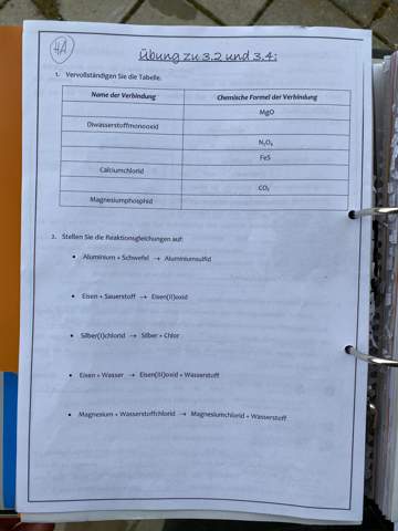 Reaktionsgleichung Aufgabe Schule Chemie