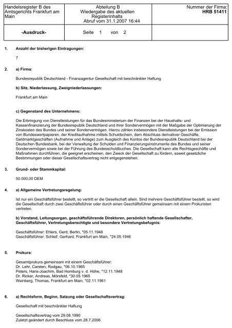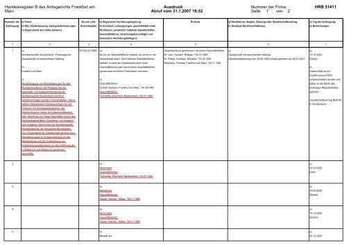Handelsregister B Des Amtsgerichts Frankfurt Am Main Ausdruck
