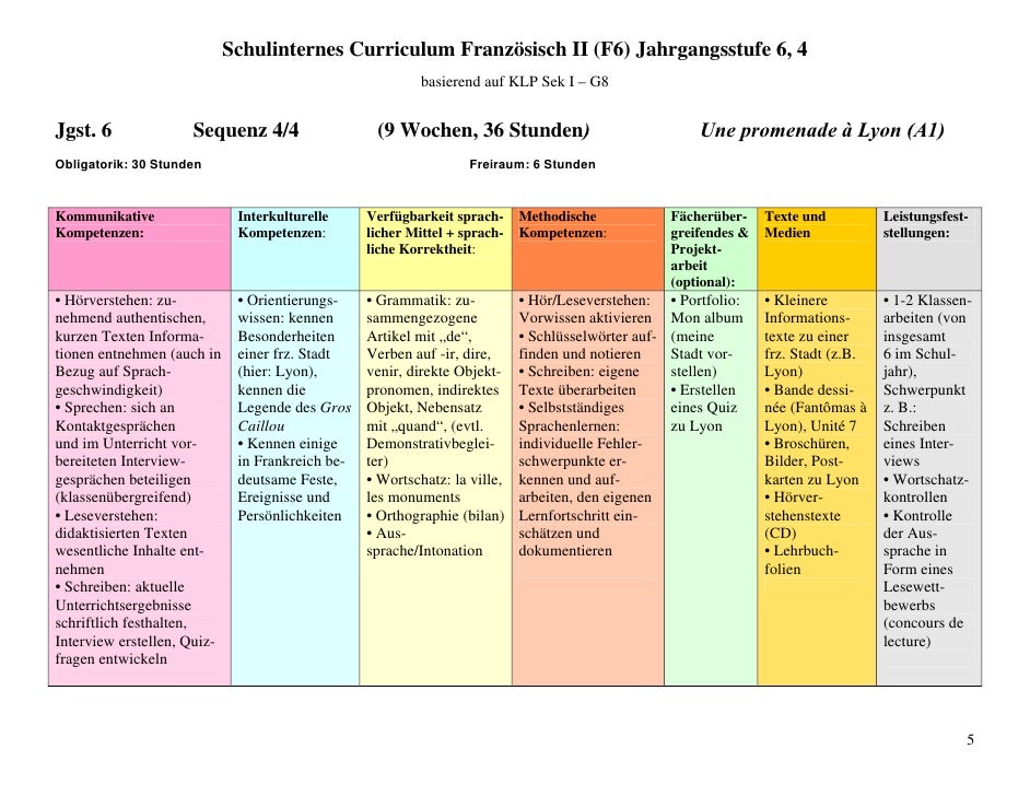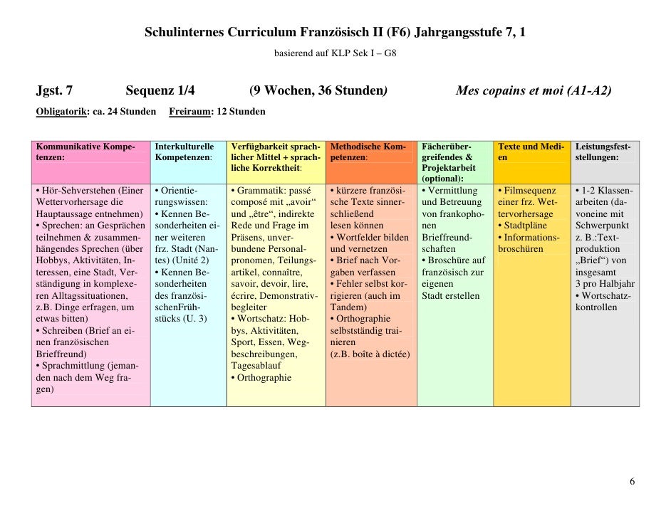 Schuleigenes Curriculum Franzosisch Fur Den Jahrgang Pdf Kostenfreier Download