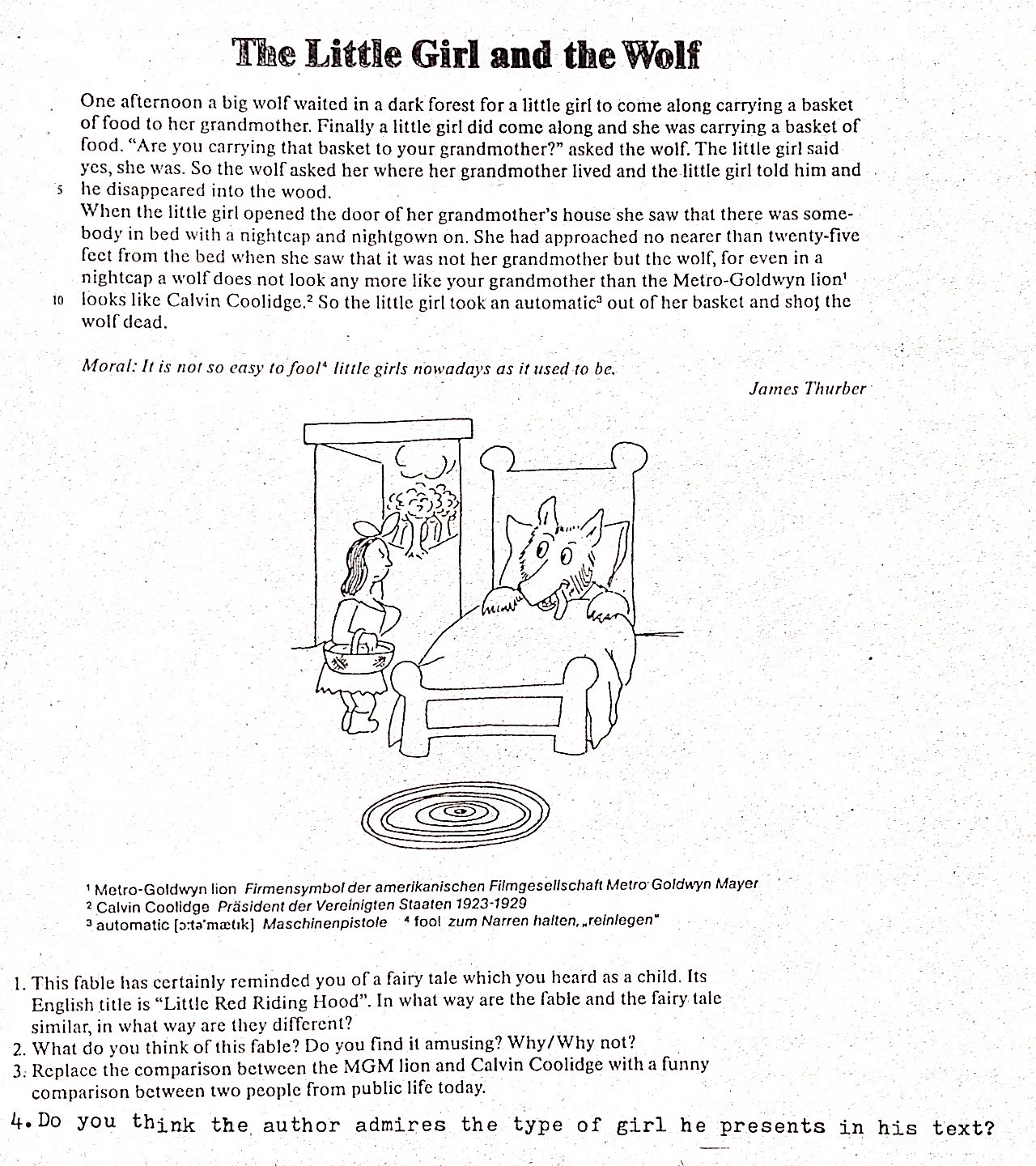 James Thurber The Little Girl And The Wolf Englisch Hausaufgaben Schule Deutsch Sprache