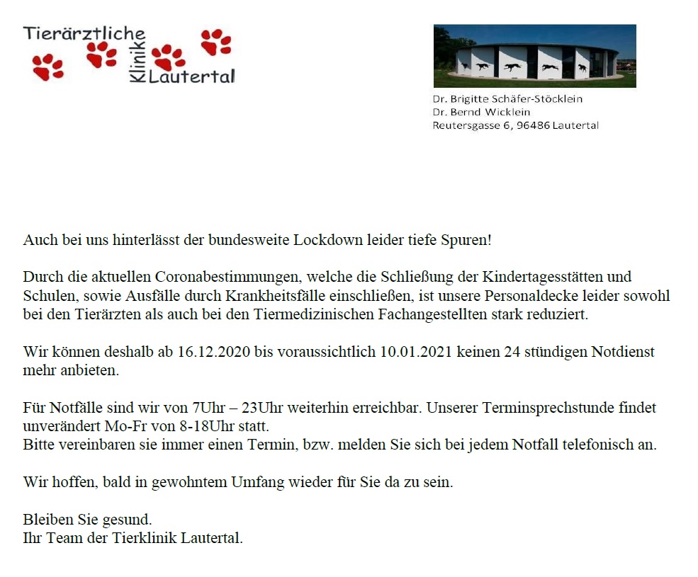 Liebe Kunden Damit Es Nicht Zu Weiteren Tierklinik Lautertal Facebook