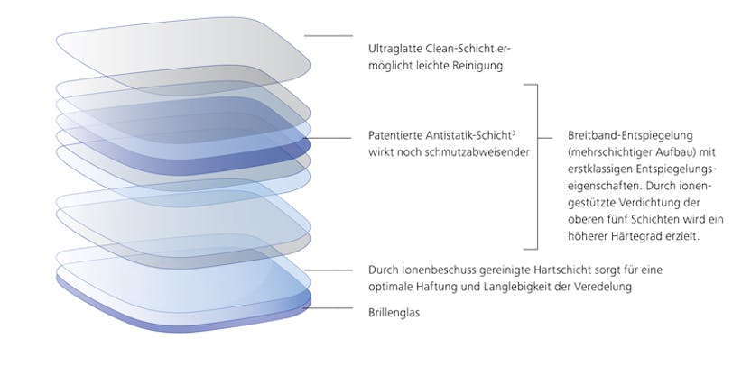 Brillenglaser Beschichtung Entspiegelung Clean Coat