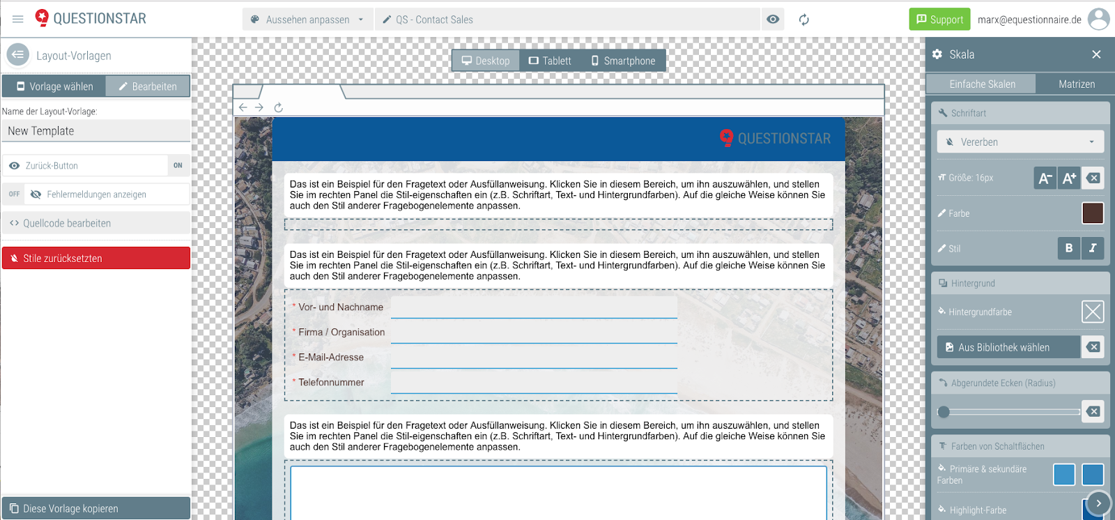 Umfragetool Fragebogenlayout Frei Anpassen Unipark