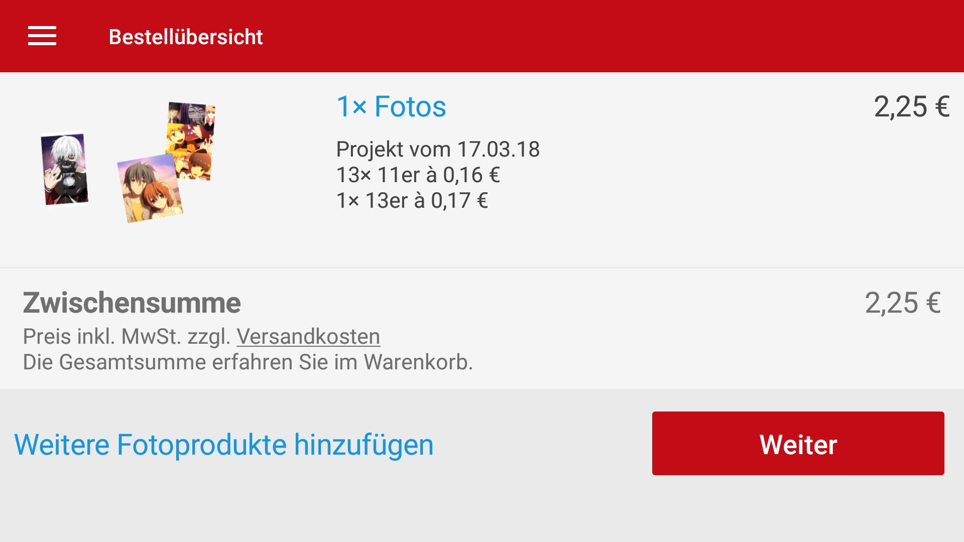 Foto 9er Format 0,07 € Foto 9x9 0,07 € Foto 9x13 cm 0,07 € Foto 10er Format ab 0,08 € Foto 10x10 ab 0,08 € Foto 10x15 cm ab 0,08 € Foto 11er Format 0,13 € Foto 11x11 0,13 € Foto 11x17 cm 0,13 € Foto 13er Format 0,14 € Foto 13x13 cm 0,14 € Foto 13x18 cm 0,14 € Foto er Format 0,49 € Foto x 0,49 € Foto x30 cm 0. Verfügbare Formate 9er 10er 11er 13er er Hinweis Bitte prüfen Sie im Gestaltungsprozess stets jedes einzelne Bild, um sicherzugehen, dass der gewünschte Bildausschnitt vollständig auf dem Druck enthalten ist. 11er 11x15 cm* 11x17 cm* 13er 13x17 cm* 13x18 cm* er x27 cm* x30 cm* 30er 30x40 cm* 30x45 cm* *produktionsbedingte Abweichungen möglich Falls Ihre Bilder nicht im klassischen Format vorliegen, Sie dieses aber wünschen, können Sie Ihre Bilddateien, etwa in unserer CEWE FOTOVORSCHAU, entsprechend zuschneiden.